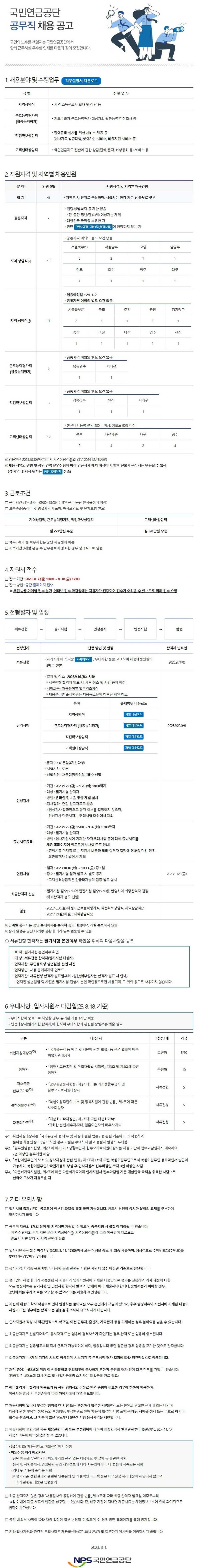 국민연금공단이 2024년 상반기 채용을 발표해 관심이 뜨겁다. 이번 채용은 다양한 직위에서 인재를 선발하며, 채용 절차는 서류심사, 필기시험, 면접 등을 통해 진행된다. 아래에서는 국민연금 채용 개요, 경쟁률, 서류전형, 필기시험, 면접 준비 방법 등을 자세히 안내해 드립니다.